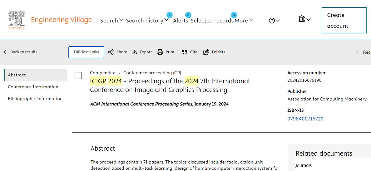 The conference proceedings of ICIGP 2023 has been indexed by Ei Compendex.