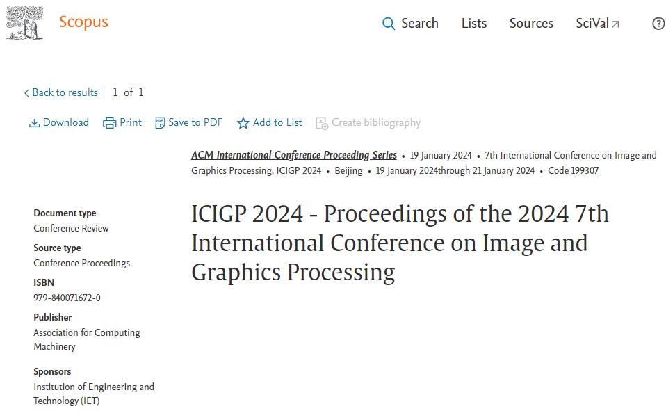 The conference proceedings of ICIGP 2023 has been indexed by Scopus.